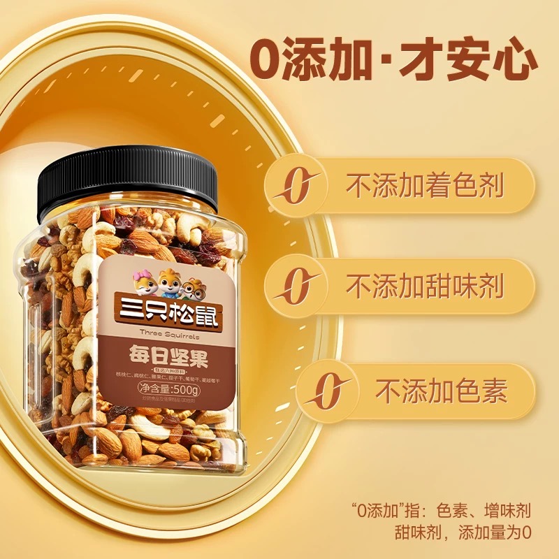 三只松鼠每日坚果量贩罐装500g混合坚果休闲零食孕妇健康早餐整罐