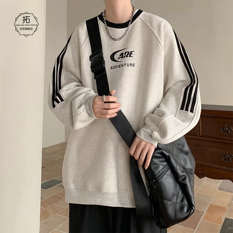 美式复古国潮拼接卫衣男春秋潮牌vibe内搭打底衫三条杠设计感上衣