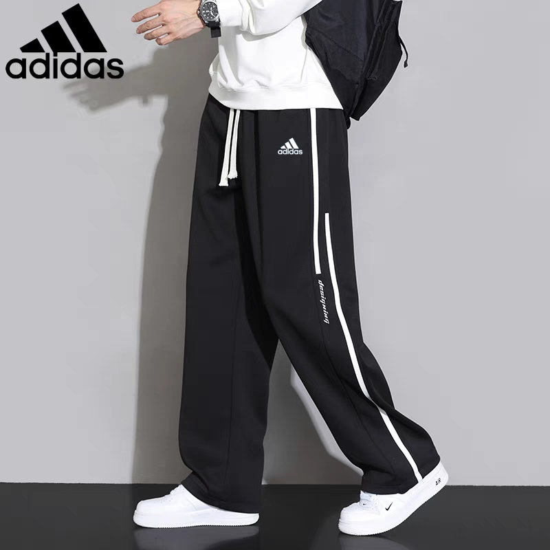Adidas阿迪达斯男士卫裤直筒宽松美式侧边条纹运动裤休闲