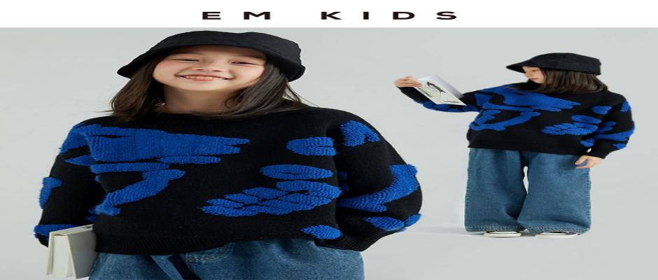 EM童装男女童潮牌提花毛衣宽松2023秋冬新款中大童毛衣针织衫洋气