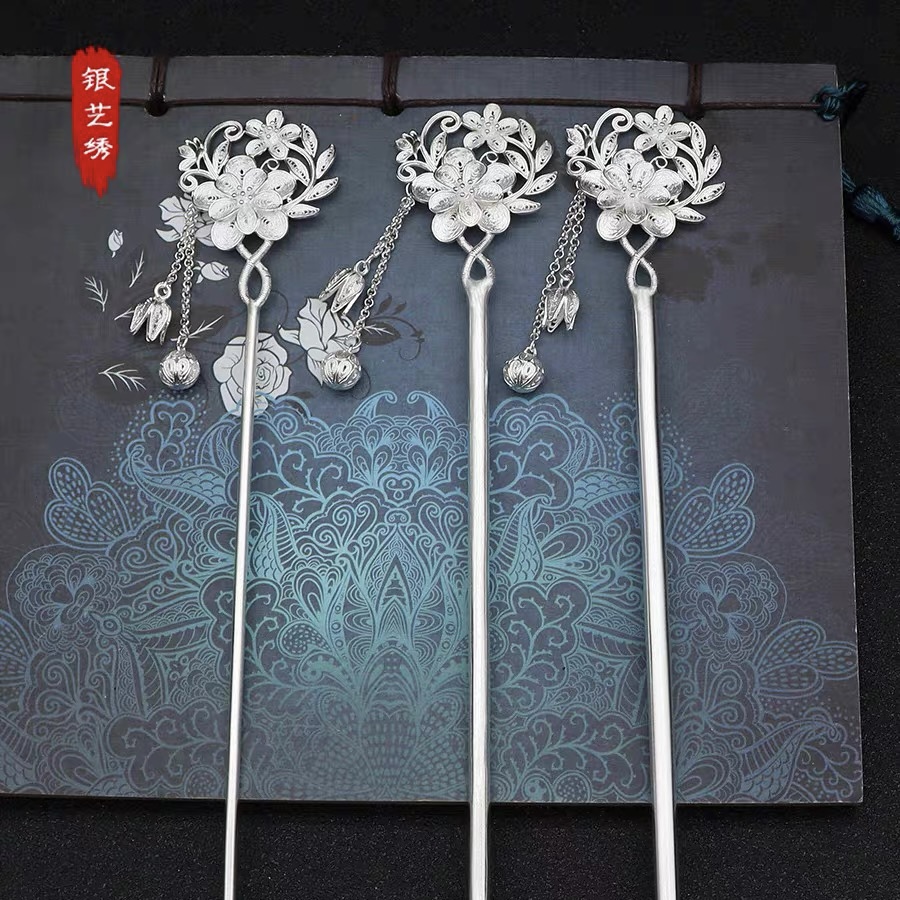 s999纯银发簪 可盘发 装饰 送女友 朋友 生日礼物