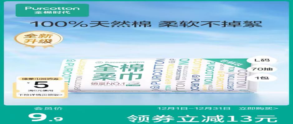 【超值尝鲜】全棉时代100%棉一次性洗脸巾干湿两用棉柔巾加厚L码