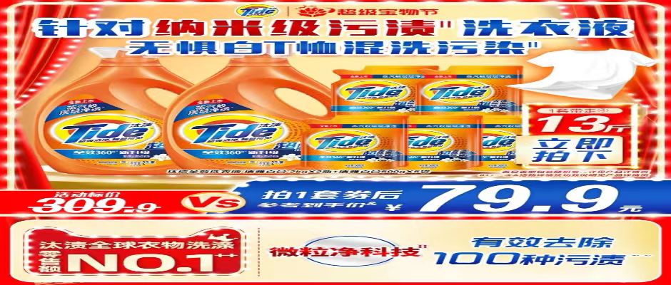 汰渍洗衣液13斤纳米级洁净除菌除螨持久留香整箱批家用正品