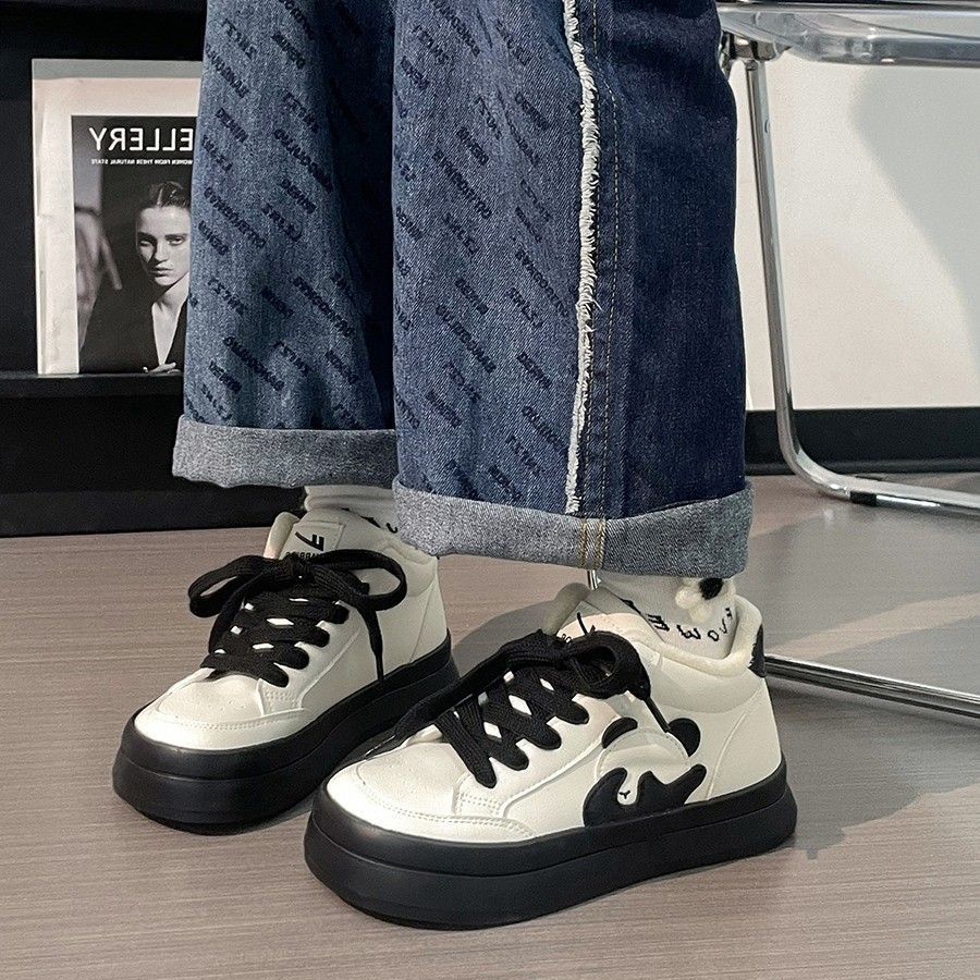黑白熊猫女鞋冬季加绒保暖二棉鞋子女原创百搭小白鞋