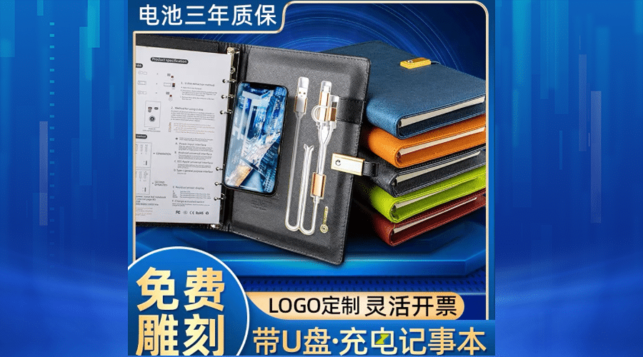 PU热压变色变革、8000mAh后置充电、磁扣16G优盘、3种充电接口