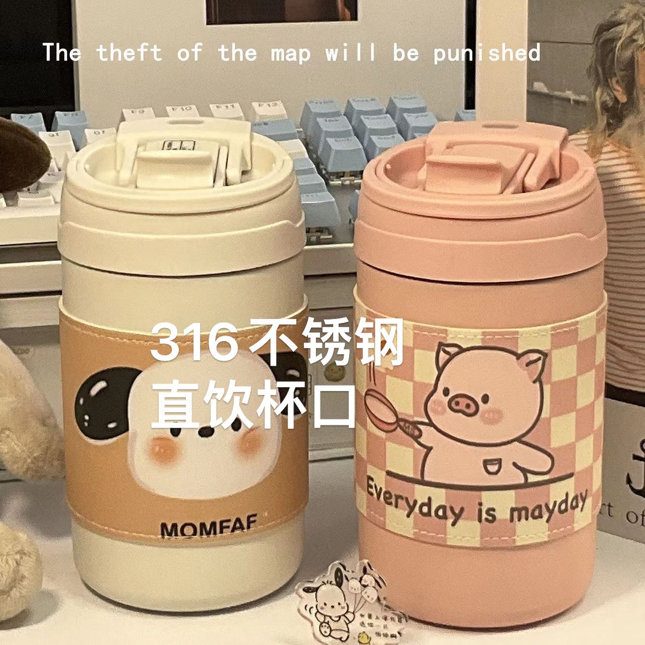 质量好,外观可爱,316不锈钢杯子,带皮套吸管