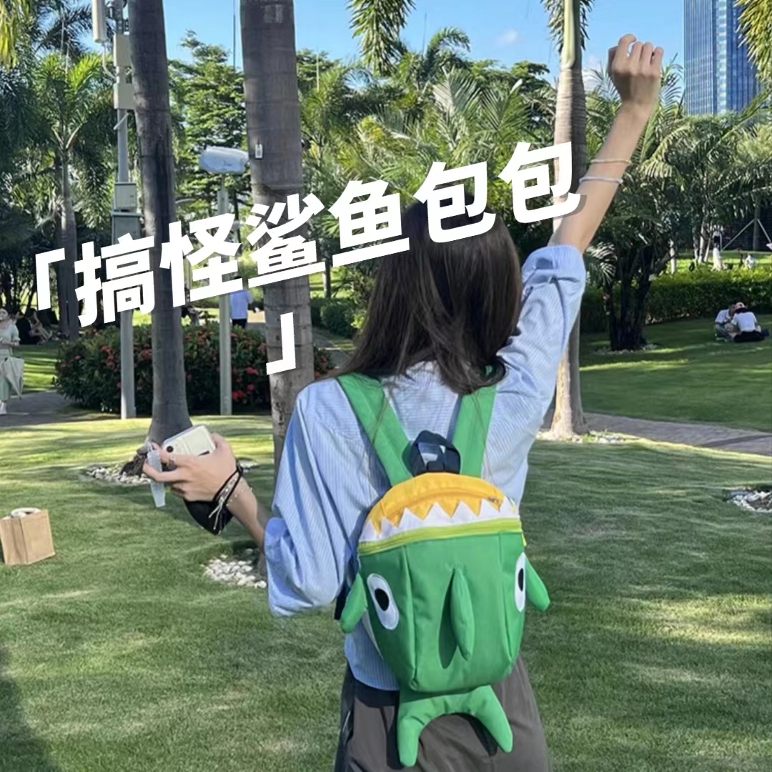 鲨鱼小书包高中生大学生小众旅行可爱搞怪双肩包女生背包2023新款