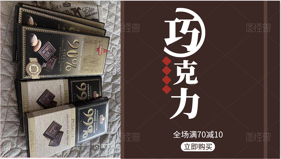 俄罗斯国家馆进口斯巴达克纯黑苦味巧克力72%90%可可脂牛皮纸盒装