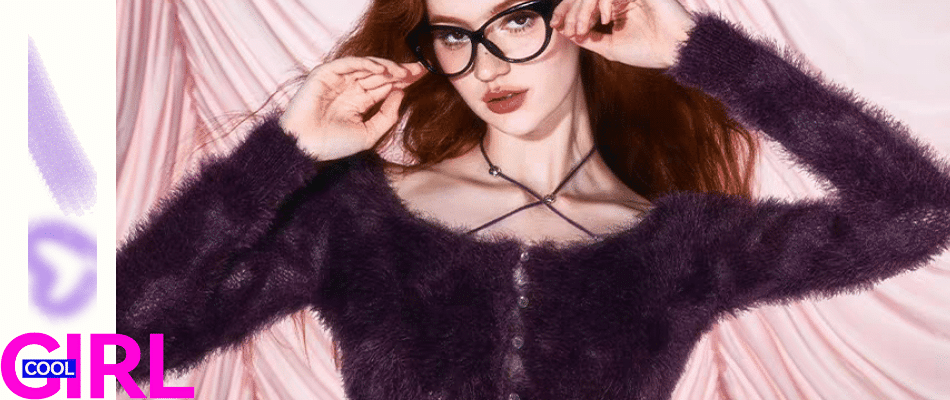 唔哈/2023秋冬季新款毛毛打底衫紫色毛衣短款紫葡萄少女上衣