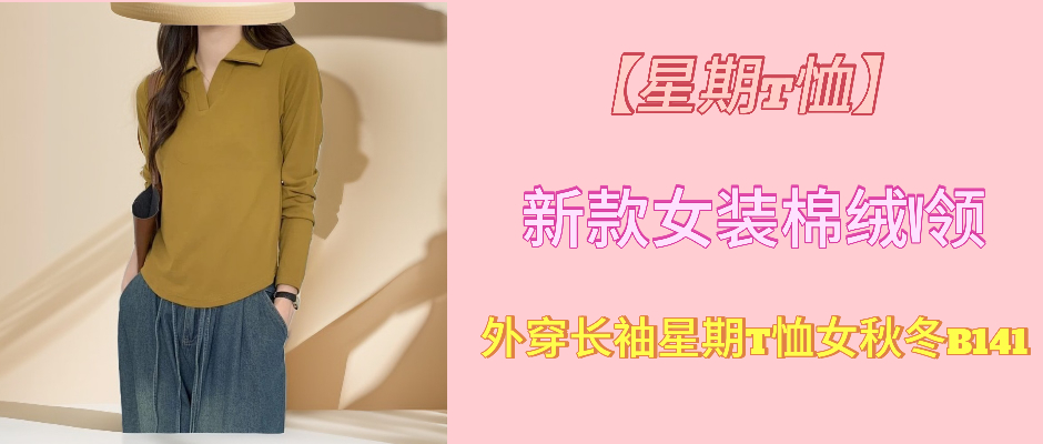 【星期T恤】新款女装暖绒v领polo衫,外穿长袖星期T恤女秋冬B141