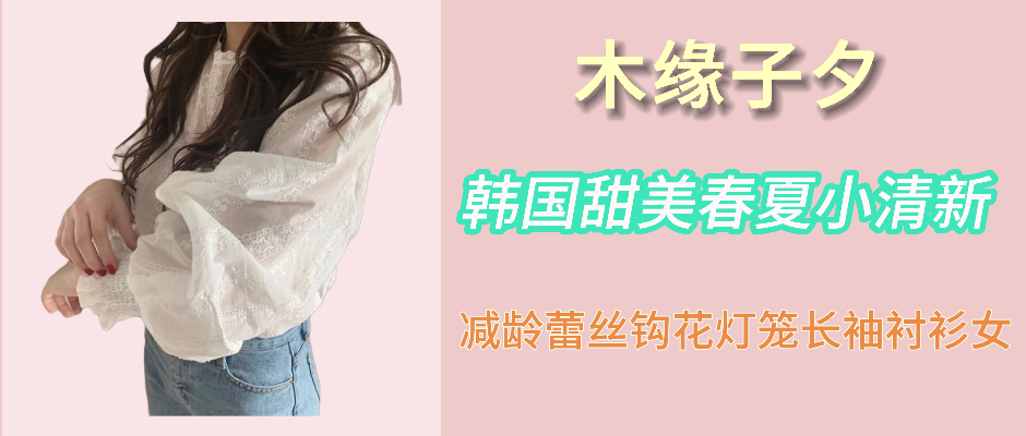 木缘子夕韩国甜美春夏小清新减龄蕾丝勾花灯笼长袖衬衫女