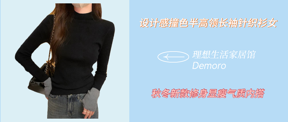 设计感撞色半高领长袖针织衫女秋冬新款修身显瘦气质内搭打底上衣