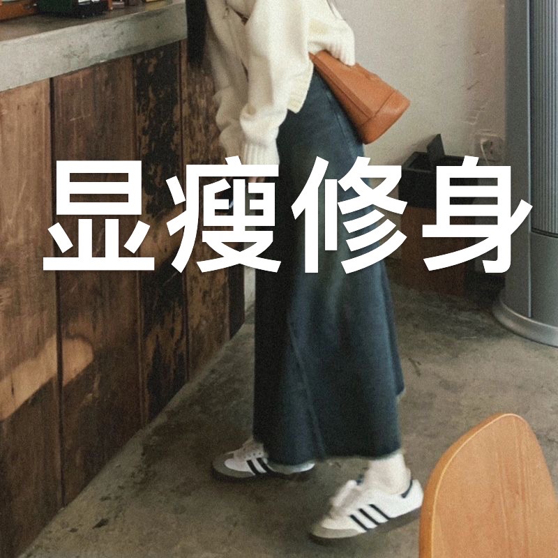 牛仔的面料柔软有弹力 上身舒适透气 垂感好。高腰的版型加上微拖地的版型视觉拉长了腿部的比例 裤脚做了毛絮边的设计