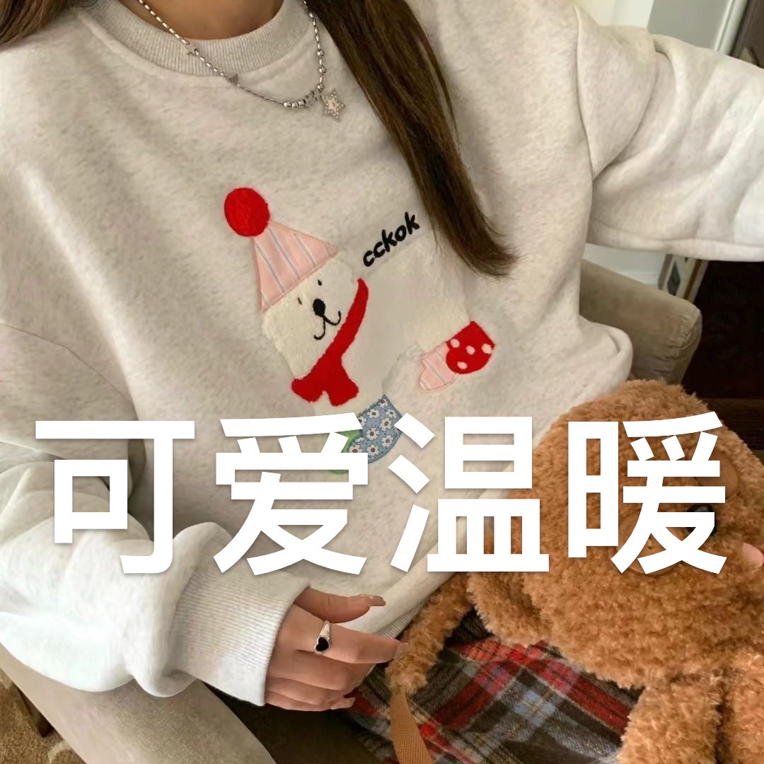 女士无帽加绒卫衣,穿得就是放松的态度 无帽设计自带宽松休闲感,慵懒加倍 加绒设计,带给全身温暖,外出更安心