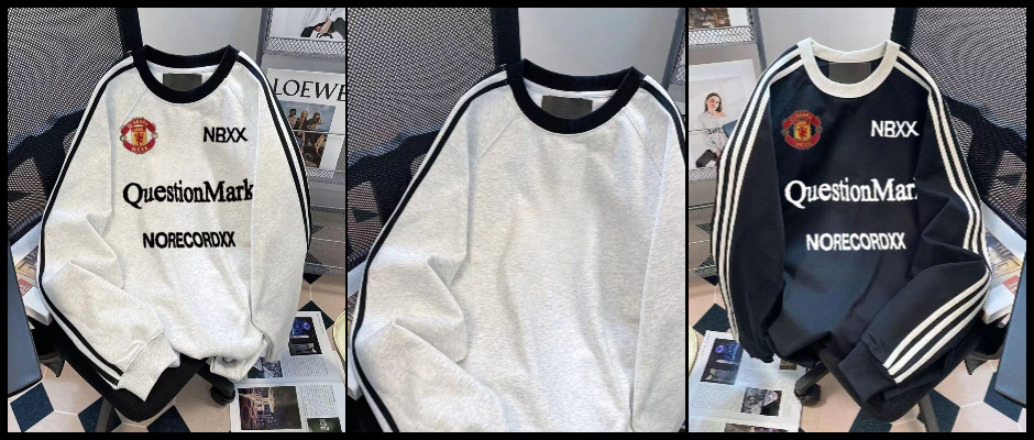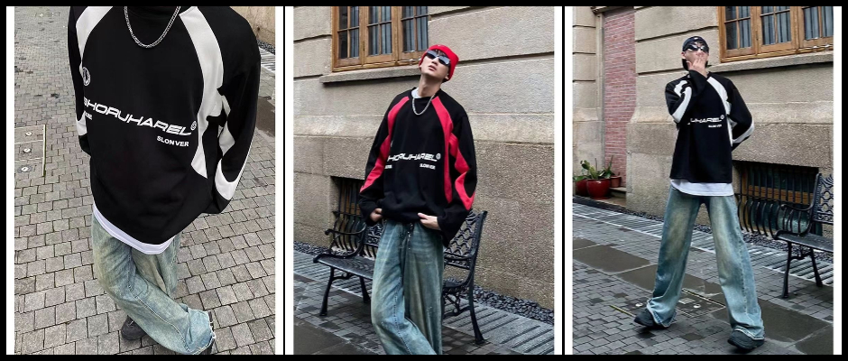 洵归/美式复古重磅赛车卫衣男春秋长袖hiphop球服无帽圆领外套潮 黑 L