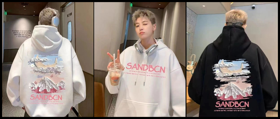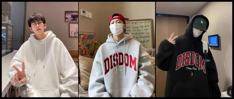 卡通印花设计新款卫衣男女套头秋冬季休闲美式宽松带帽加绒外套男 黑 XL