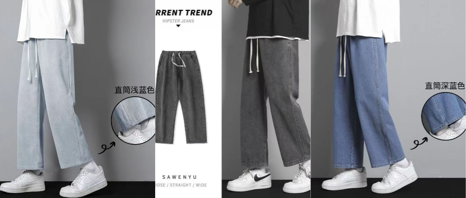 牛仔裤男新款宽松直筒裤子男春夏潮流百搭复古松紧腰阔腿九分裤 蓝 L