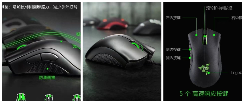 Razer雷蛇炼狱蝰蛇黑色白色电竞游戏鼠标宏标准版