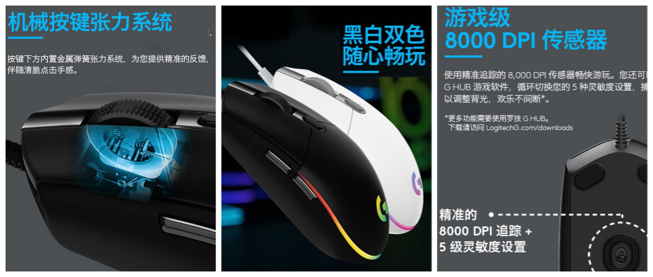 罗技(G)G102 LIGHTSYNC 游戏鼠标