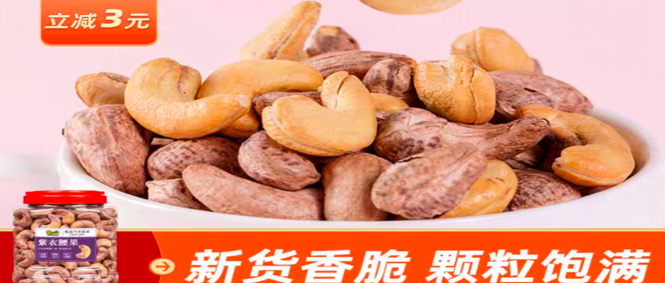 带皮烘焙腰果 醇香可口 酥脆易剥 粒大饱满自然本色大颗粒