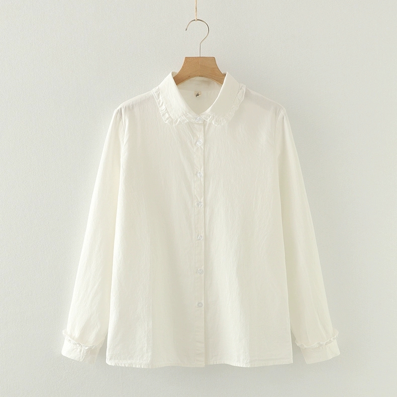 韩范文艺小清新木耳花边娃娃领纯棉白领衬衫女长袖通勤打底衫学生潮