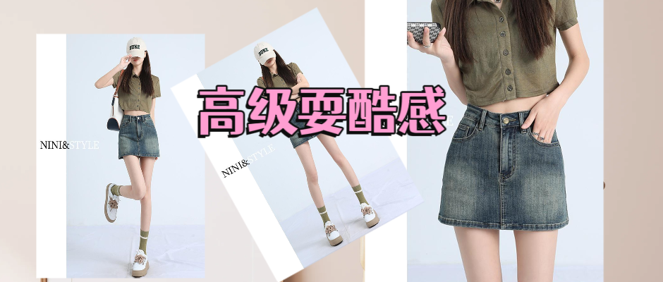 辣妹做旧复古牛仔半身裙裙女夏季新款小个子高腰百搭a字包臀短裙