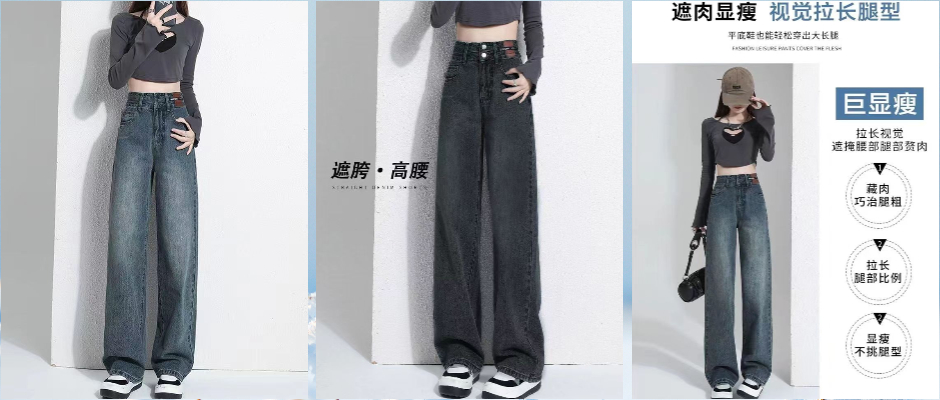 阔腿牛仔裤,女秋冬加绒,高腰显瘦垂感,小个子大码宽松,直筒裤