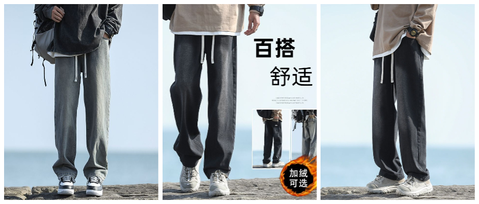 PNJ水洗复古牛仔裤男秋冬季新款潮牌美式宽松休闲百搭阔腿长裤子 牛仔裤 黑色 M