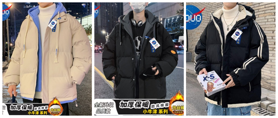2023新款连帽羽绒棉服男潮牌冬季百搭保暖棉衣加厚男大码面包衣服 羽绒棉服 蓝色 M