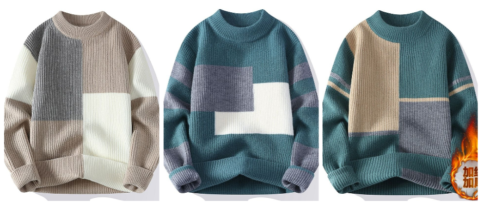 高档加绒加厚冬季男士毛衣男圆领休闲针织衫潮流打底衫保暖上衣服 毛衣 绿色 L