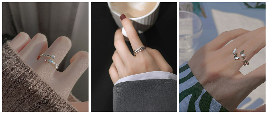 s925纯银白色链条开口戒指女简约气质个性高级感港风食指戒冷淡风 开口戒