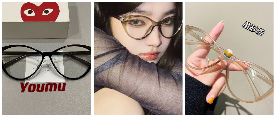 2023年欧美风猫眼眼镜女防蓝光辐射个性潮搭平光镜可配近视度数眼睛