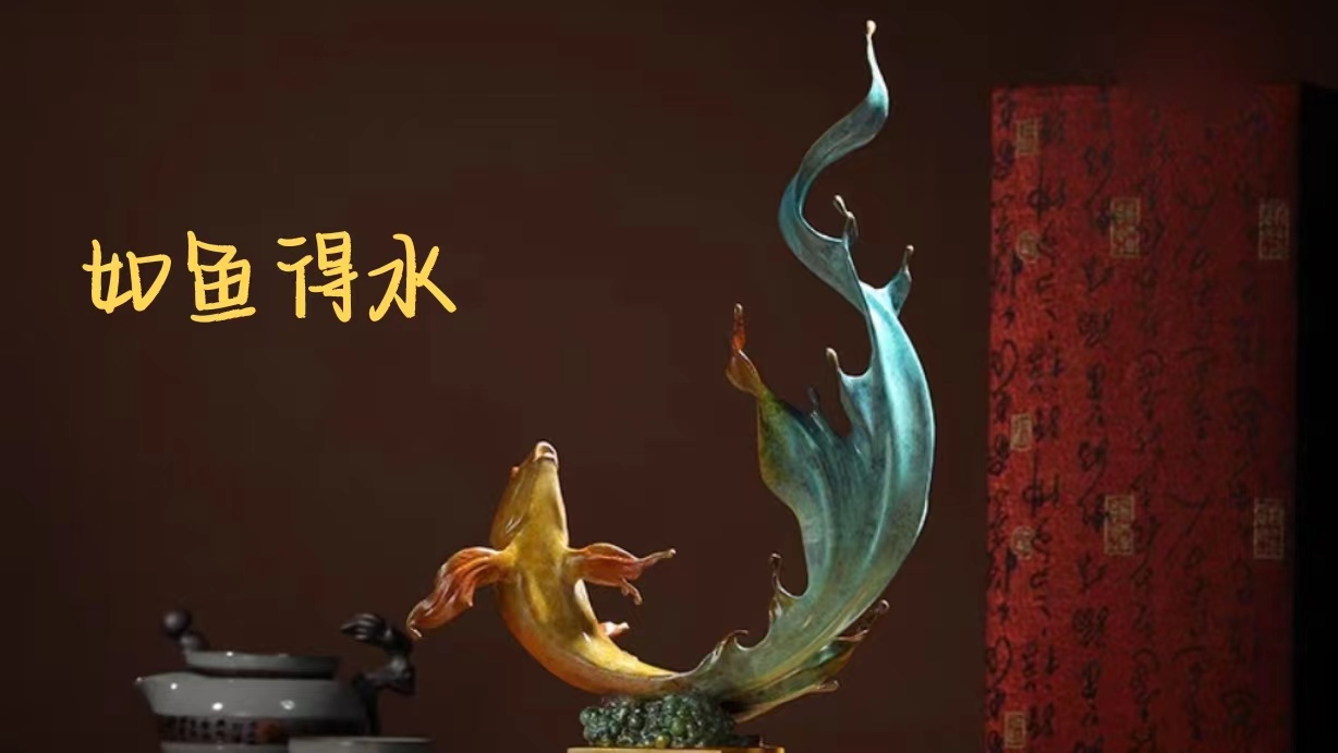 如鱼得水 招财木铜摆件生意金鱼开业乔迁新居礼物办公室装饰品