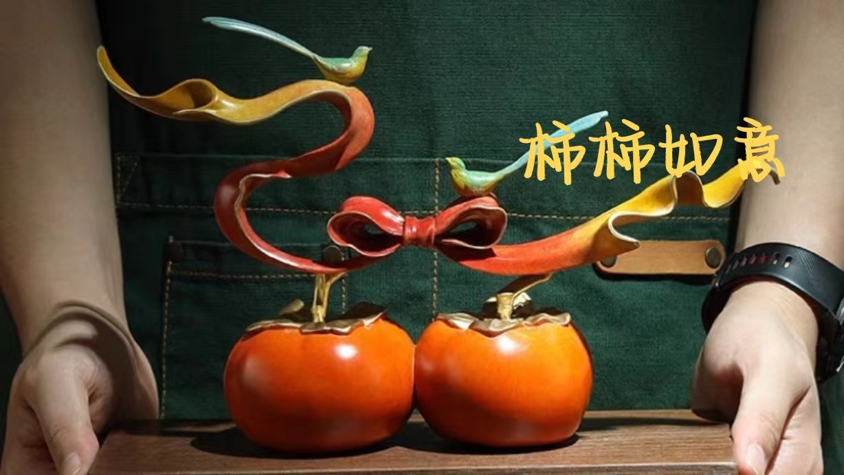 木铜喜事连连摆件柿柿事事如意工艺品客厅酒柜装饰品乔迁结婚礼品