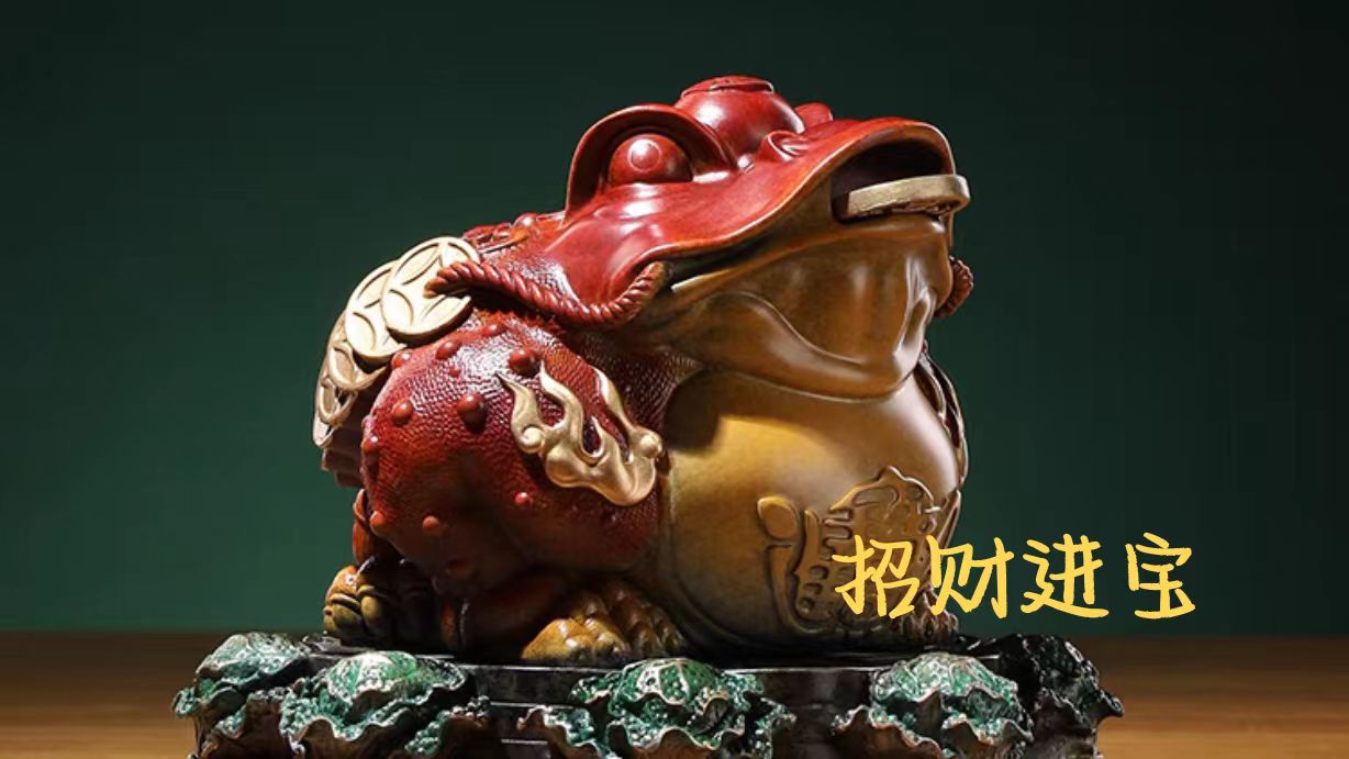 木黄铜八方来财聚财金蟾招财摆件三足蟾蜍办公室客厅桌面开业礼品