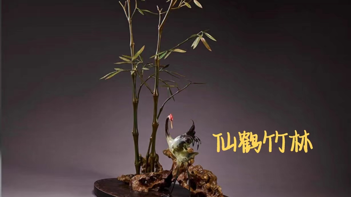 仙鹤竹林木铜摆件 新中式客厅玄关家居装饰品乔迁礼品工艺品