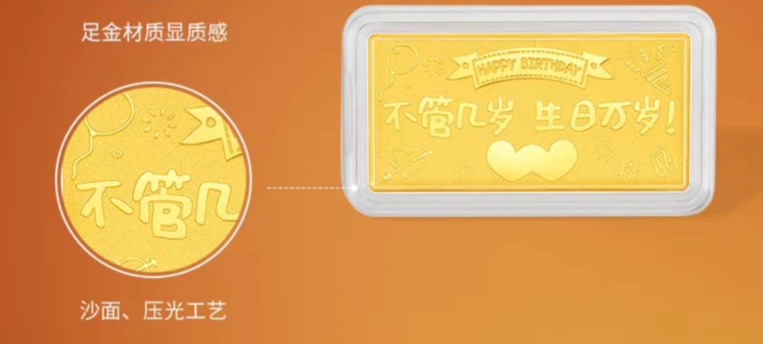 周六福投资金生日快乐金条足金计价5g黄金储值收藏送女友圣诞礼物