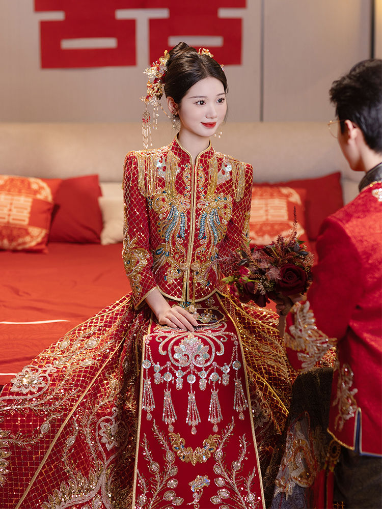 格格柳莎【书蕾】重工秀禾服新款新娘冬季丝绒款中式嫁衣龙凤褂女