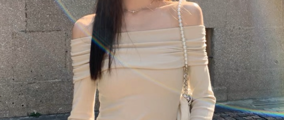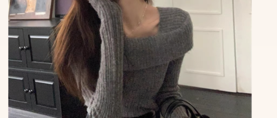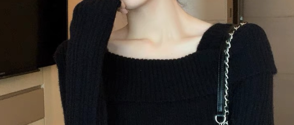 一字肩修身毛衣露肩设计