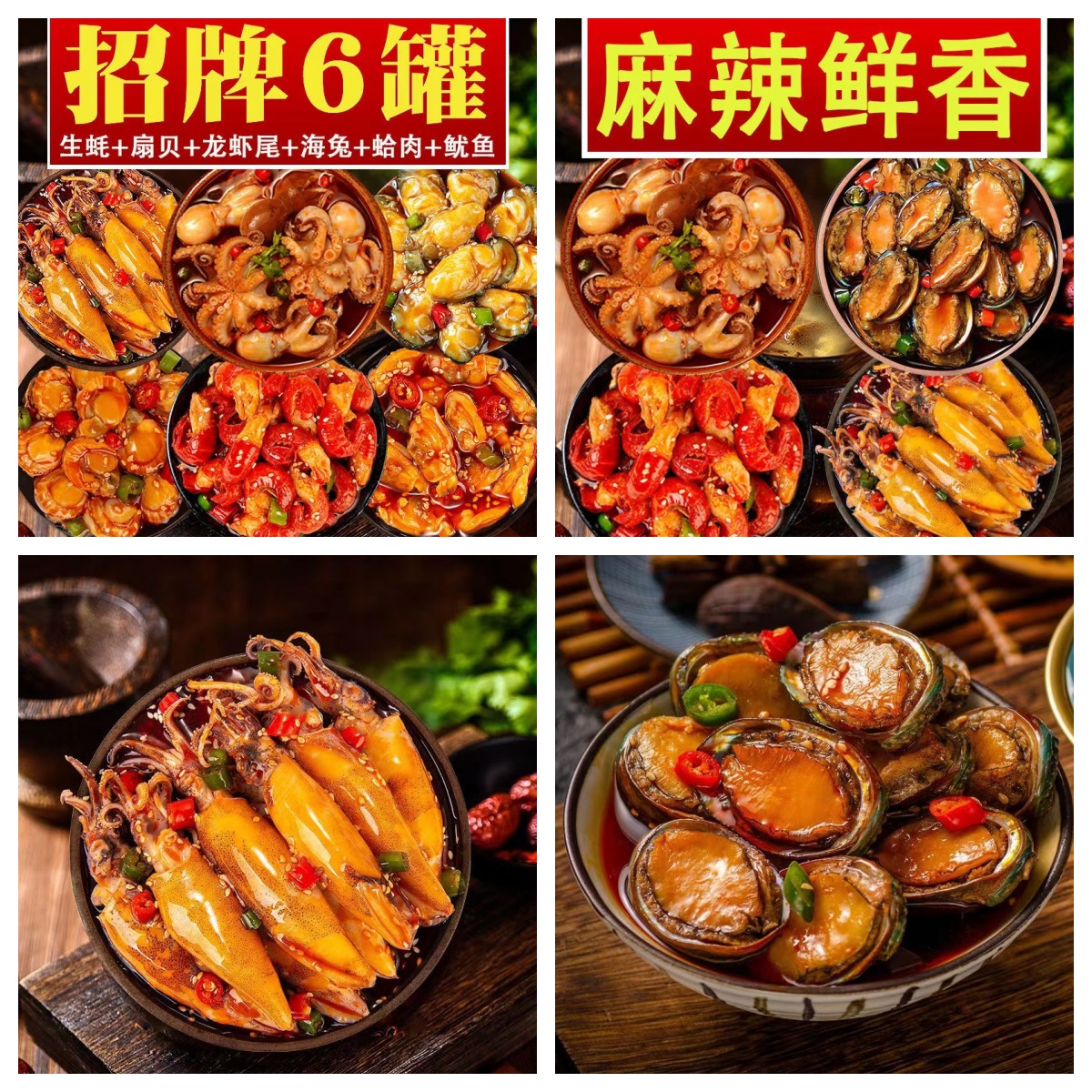 麻辣小海鲜熟食即食罐装组合罐头扇贝蛤蜊生蚝海兔鲍鱼网红下饭菜