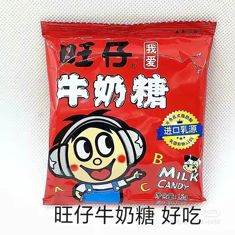 富含人体每日必须的多种氨基酸、钙、脂肪、维生素等营养成份;大红色的包装设计,醒目的旺仔LOGO,高端的品质,定价合理,奶味纯正、浓郁、淳厚,口味香甜,咬感好--浓浓的奶香咬出甜甜的好滋味,色彩鲜亮抢眼、喜庆高档,非常讨消费者喜爱。旺仔牛奶糖是位於台湾旺旺集团出品的奶类糖果
