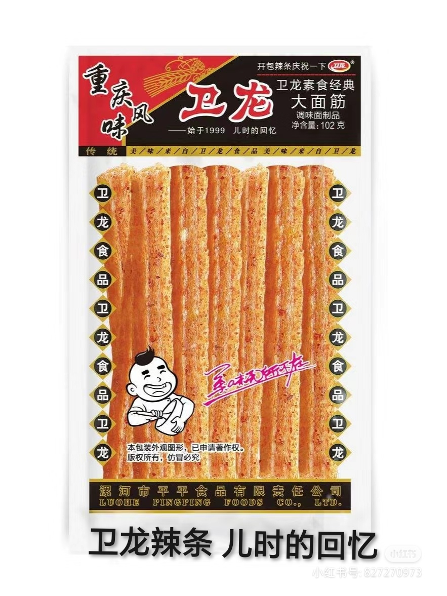 卫龙辣条的特点在于其独特的口感和辣味。辣条的主要原料是淀粉、面粉、脱水马铃薯等,经过混合、压制、烘干、炸制等多道工序而成。卫龙辣条的口感酥脆,辣味浓郁,入口后能够迅速刺激味蕾,给人带来特别的感觉。此外,卫龙辣条还有着较长的保质期,方便消费者随时购买和食用。