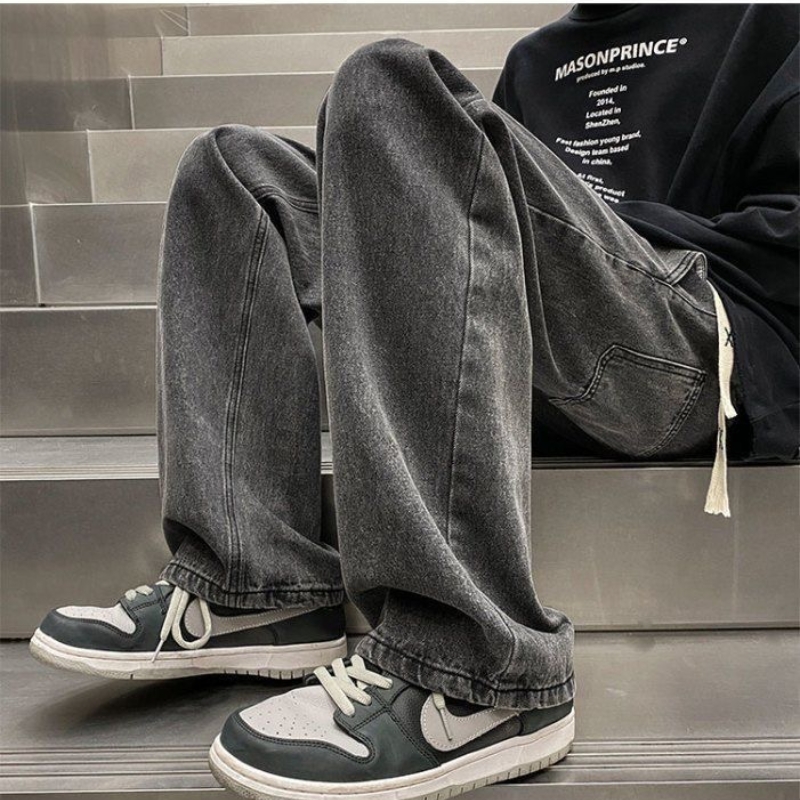 美式高街复古牛仔裤男春秋季宽松直筒阔腿百搭潮牌vibe长裤子