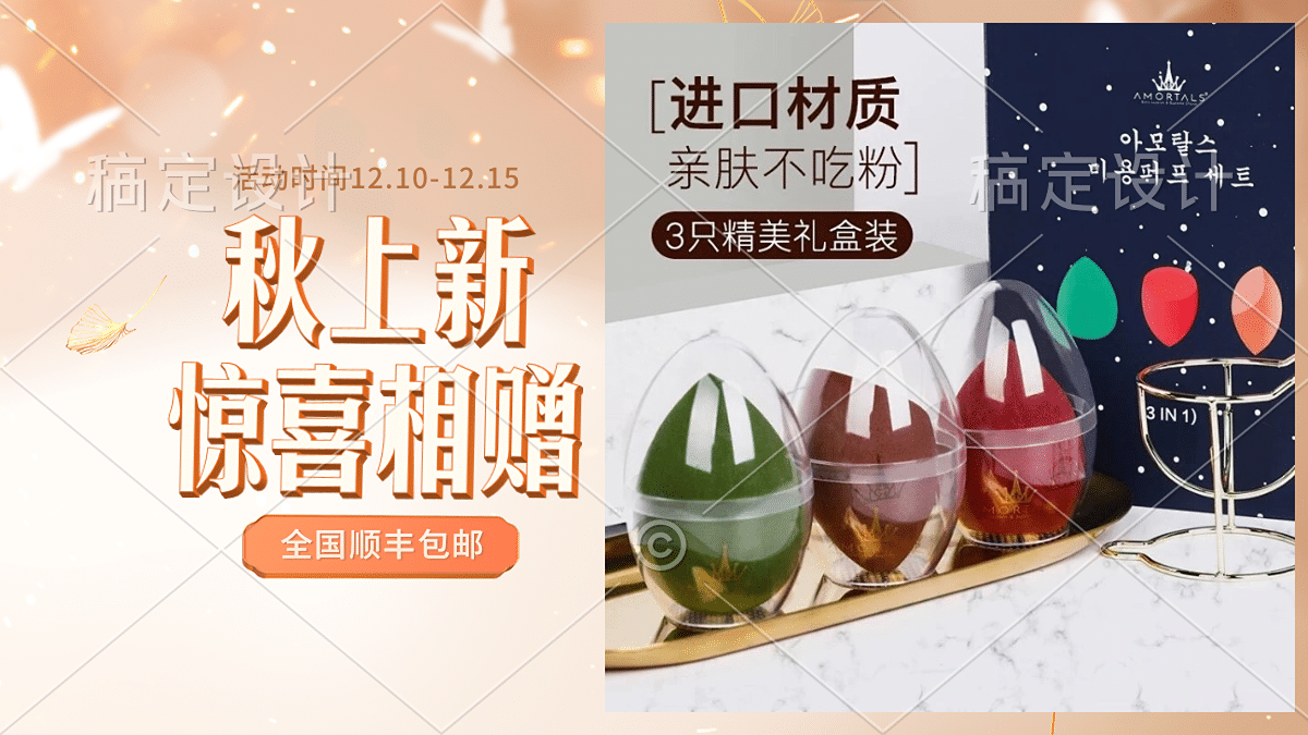 Amortals尔木萄星空美妆蛋套装(美妆蛋3个+粉扑架1)