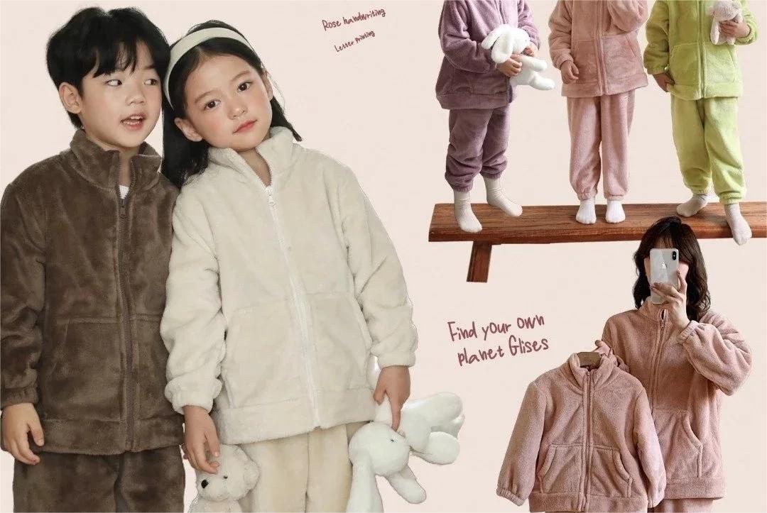 代工厂出❗全家一起安排❗高品质亲子家居服毛茸茸套装❗居家外出都可穿!松松暖暖的触感,不掉毛!
