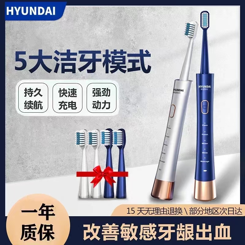 【HYUNDAI韩国现代小蛮腰电动牙刷】IPX7级防水,一分钟38000次震动!续航能力强。
