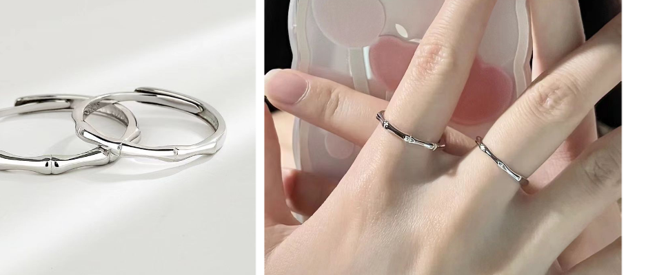 竹子戒指竹节戒简约小众纪念情侣对戒男女一对竹节戒男女戒子潮小