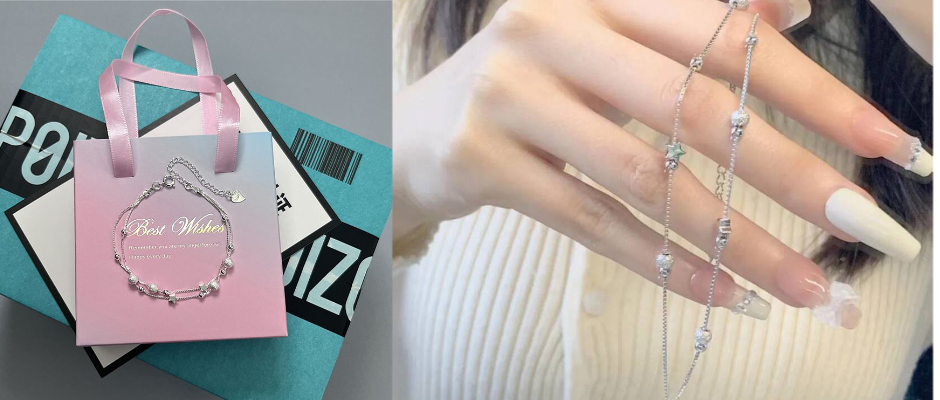 新中式蓝灰串珠碎银手链女ins小众轻奢气质精致百搭闺蜜礼物手饰