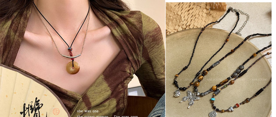 新中式黑色项链甜酷高级设计感锁骨链民族风轻奢小众复古颈链女生