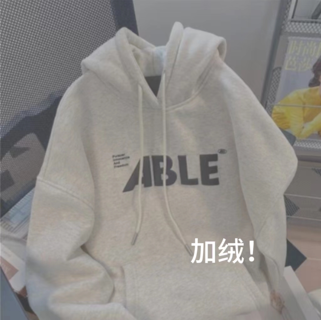 加绒卫衣宽松连帽美式